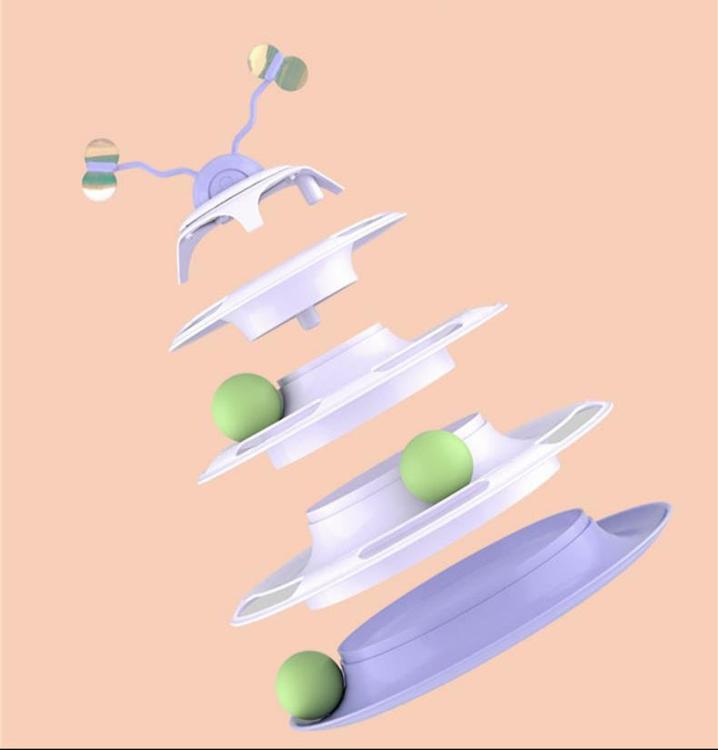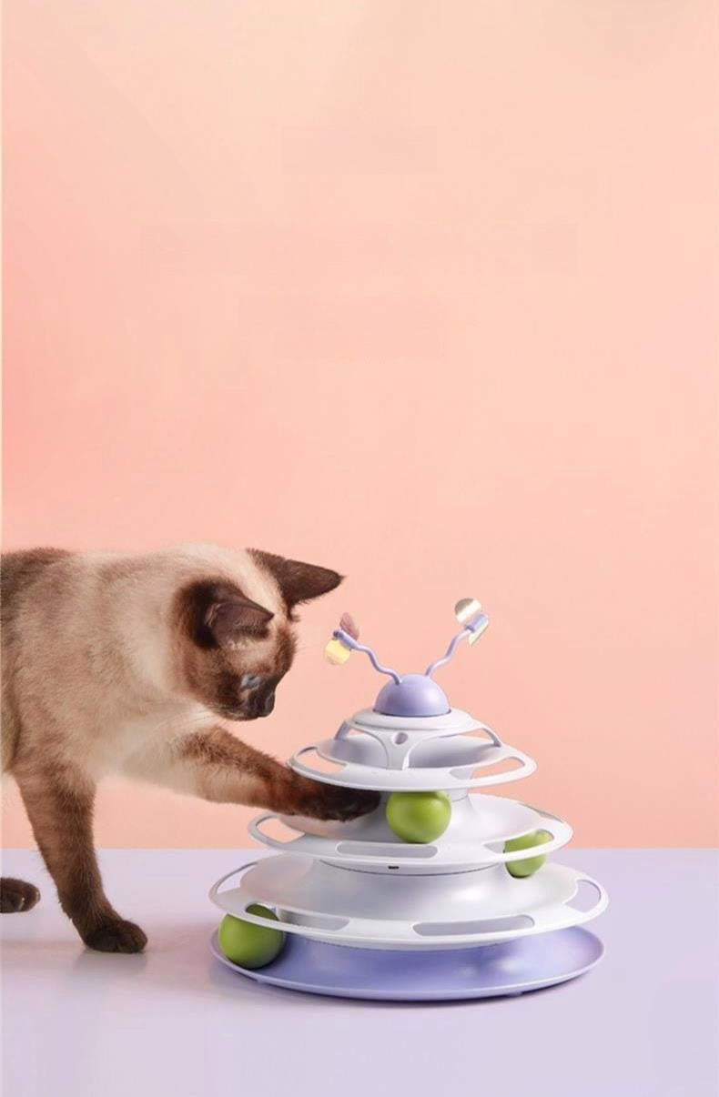 An irresistible tower of fun for curious kitties! This four-level cat toy features rolling balls and a whimsical double-head laser wand to keep your feline entertained for hours. Designed to stimulate natural hunting instincts and reduce boredom, it's the perfect combo of style and play.