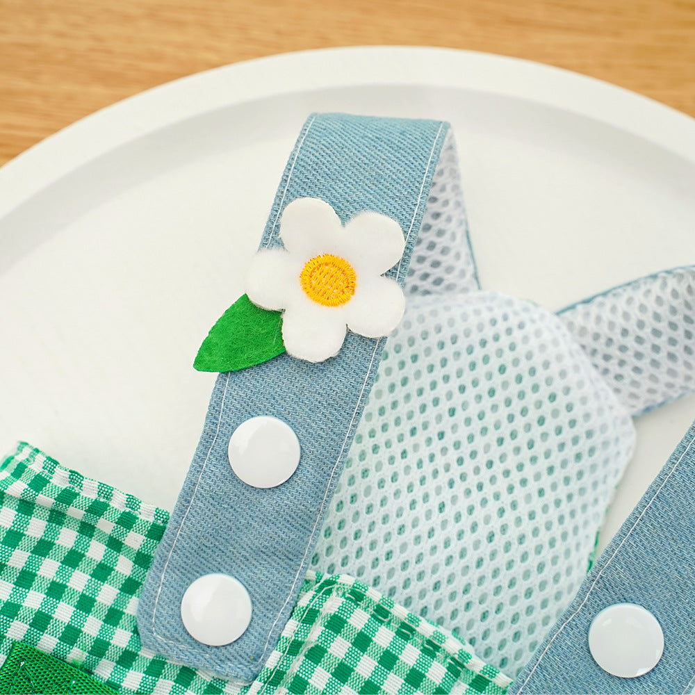 Made with breathable checkered fabric, the set includes a comfortable harness and an adorable matching cap, both decorated with 3D frog plush details for a playful look. Adjustable harness provides a secure fit, while the cap adds the perfect finishing touch for outdoor walks, parties, or photo shoots.