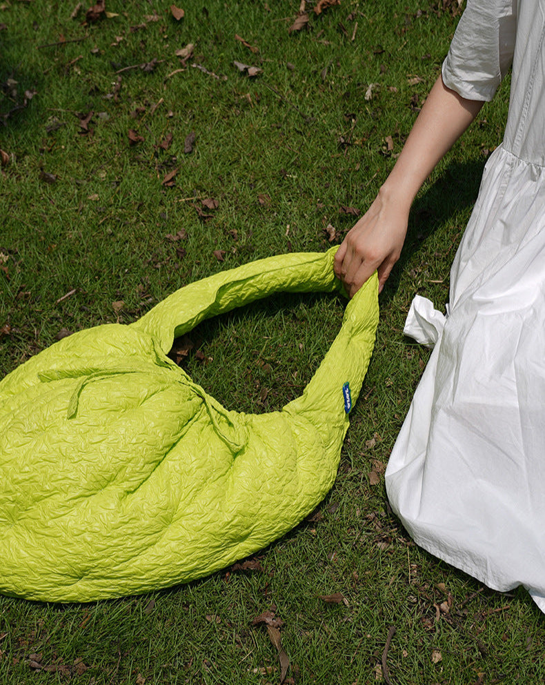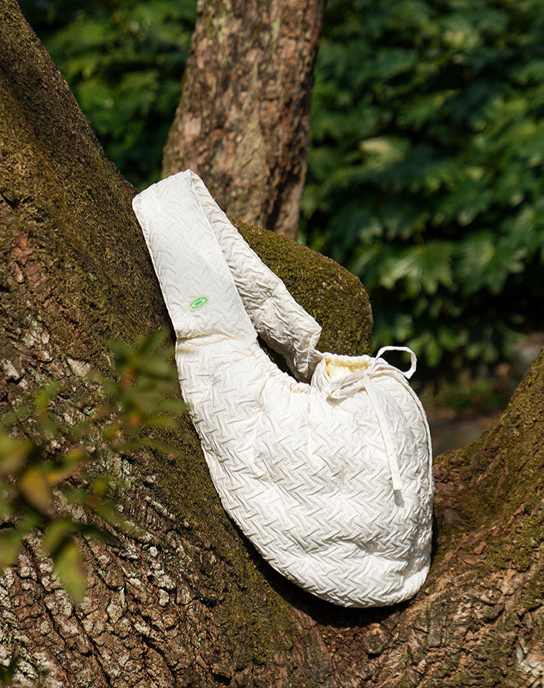 This lightweight, textured sling bag is designed for effortless outings, blending stylish fabric textures with cozy interior padding. The minimalist green stitching adds a hint of nature, perfect for casual walks or springtime getaways.